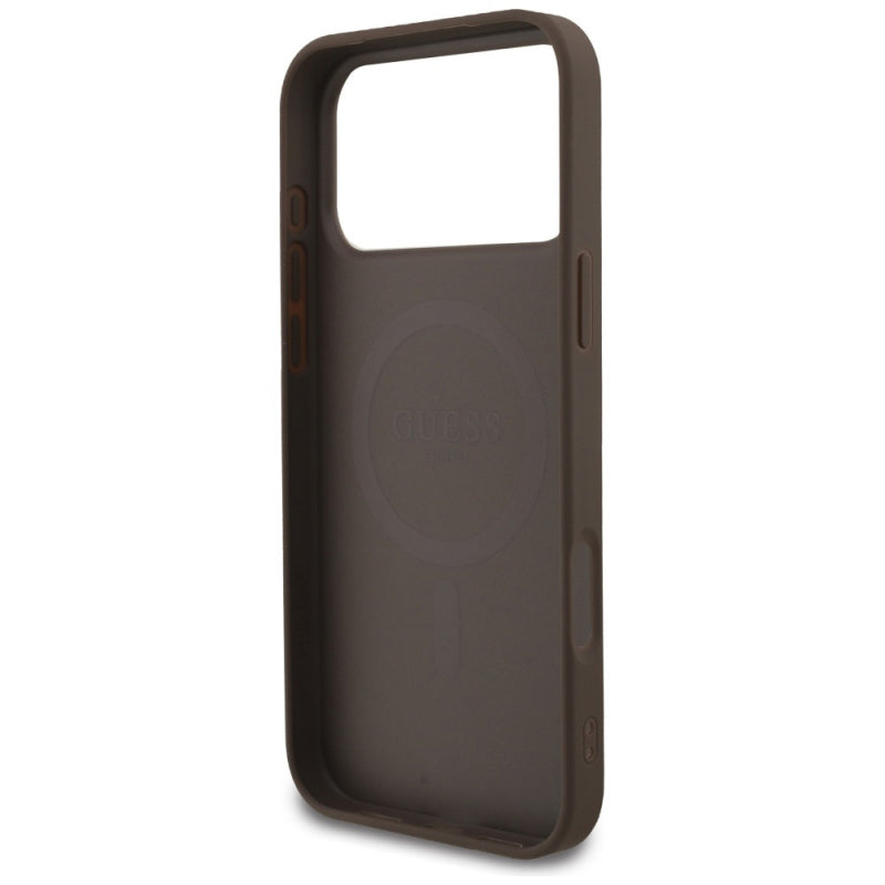 Husa MagSafe pentru Apple iPhone 17 Pro Max, Guess, 4G Triangle Logo Cord Strap - Barna utólagos megrendelésre kerül, és azonnal kiszállítjuk, amint újra raktáron van.