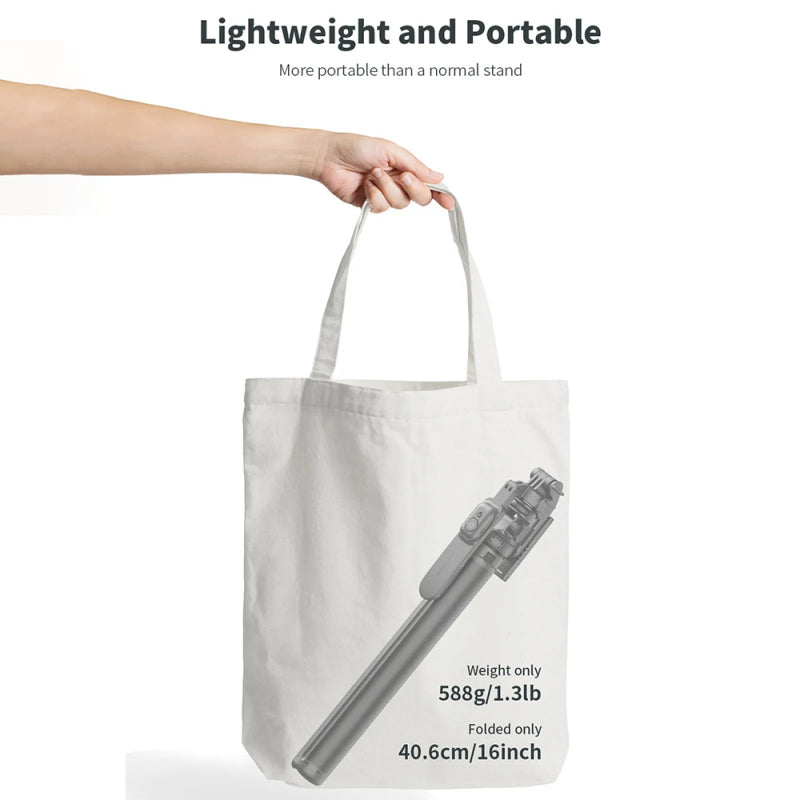 Specificatii:Materiale: ABS, aluminiu;Dimensiuni: 81 x 50,5 x 406mm;Lungime maxima selfie stick: 2055mm;Greutate: 588g;Sisteme compatibile: Android, iOS;Compatibilitate: telefoane cu latimea cuprinsa intre 65-95mm.Atentie! Lumina LED si microfonul nu sunt incluse in pachet.