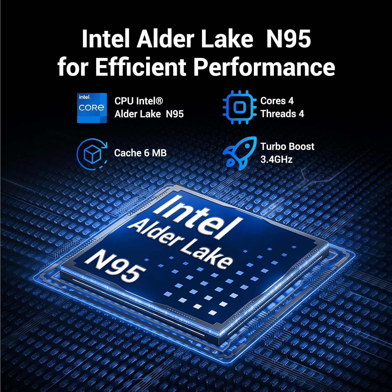 • Procesor: Intel Celeron N95, generația a 12-a, Quad-Core, până la 3.4 GHz